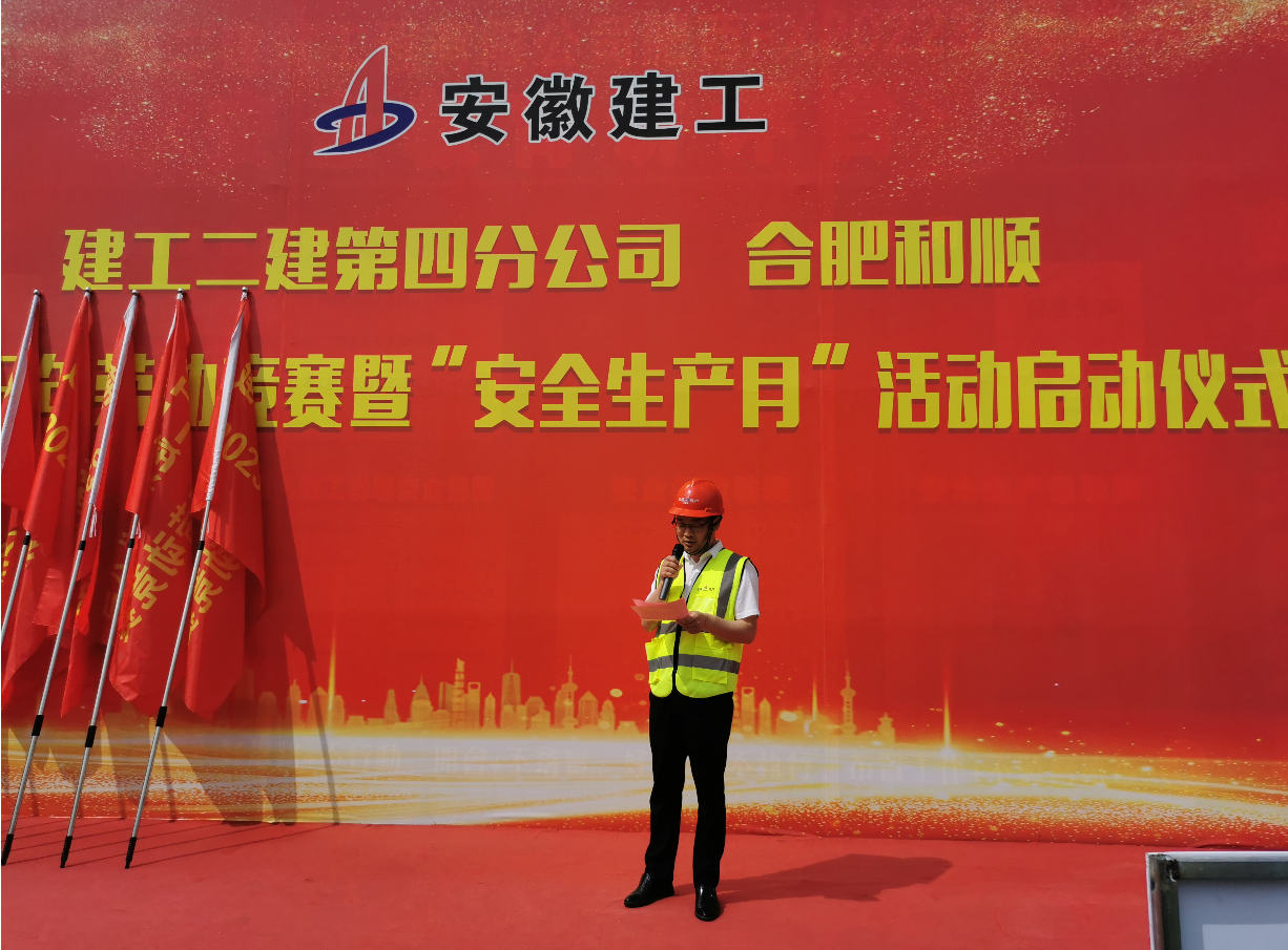 本次勞動競賽旨在充分調(diào)動廣大建設(shè)者的積極性,引導(dǎo)廣大職工充分發(fā)揮勞模精神、勞動精神、工匠精神,安全、優(yōu)質(zhì)、高效地圓滿完成施工任務(wù)?;顒蝇F(xiàn)場,第四分公司生產(chǎn)副經(jīng)理周文建作動員講話,合肥和順總經(jīng)理沈印、越秀地產(chǎn)項目總經(jīng)理董大澤分別發(fā)言,第四分公司質(zhì)量副經(jīng)理劉韌宣讀2023年勞動競賽實施方案,參賽項目代表付奎表態(tài)發(fā)言,參加活動的領(lǐng)導(dǎo)為各參賽項目授旗。