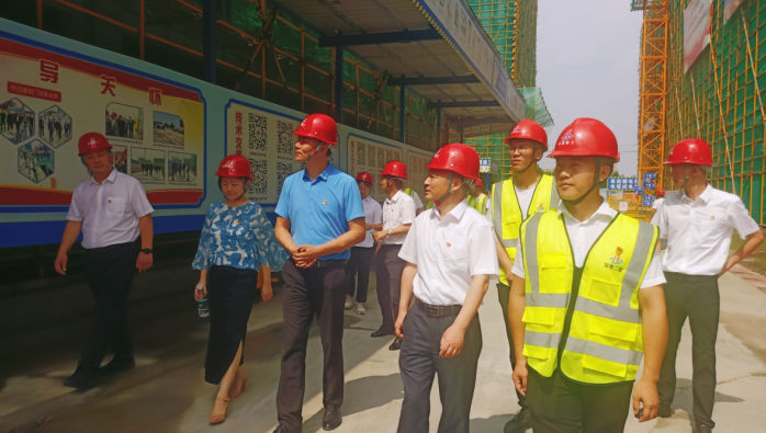 隨后,孫亮一行來到項目部,與項目管理人員就開展主題教育、企業(yè)如何做好輿情管控、下一步深化建工集團及建工二建與安徽廣播電視臺共建等進行了深入交流。葛輝詳細介紹了安徽建工集團概況,建企歷史、建工二建改革發(fā)展情況等,并就黨建與業(yè)務(wù)工作的深度融合進行了交流,他指出要深入學習貫徹習近平新時代中國特色社會主義思想主題教育,強化理論學習,做到以學鑄魂、以學增智、以學正風、以學促干。孫亮說:“今天與建工二建開展黨建活動十分有意義,我看到了‘支部建在項目上’和黨員發(fā)揮先鋒模范作用的良好效果”。他對項目工程質(zhì)量、黨建工作發(fā)揮作用等給予了高度肯定,贊許了項目一線施工人員踔厲奮發(fā)的精神面貌。姚程表示,在這個特別的日子與建工二建開展黨建共建非常榮幸,對在高溫天氣下依然堅守崗位,奮戰(zhàn)在一線的勞動者表達敬意。她說:“要努力踐行共產(chǎn)黨員的使命擔當,弘揚勞模精神、勞動精神、工匠精神,扎實做好本職工作”。