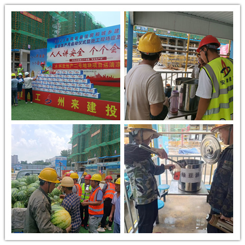 炎炎夏日“送清涼”,工地防暑有“涼”策。項目部積極響應(yīng)公司“當(dāng)好主人翁 建功大發(fā)展”勞動競賽活動號召,在項目現(xiàn)場掀起大干熱潮。項目部始終堅持一手抓生產(chǎn),一手抓防暑,通過調(diào)整作業(yè)時間,合理安排施工工序,采取了“做兩頭、歇中間”的方法,有效避開高溫時段,為員工提供一個良好的工作和休息環(huán)境。