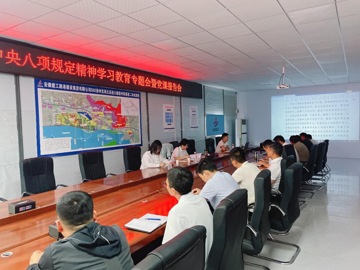 近日,宿州投發(fā)機關(guān)黨支部書記徐晶晶一行先后赴S02徐商高速路基二標(biāo)項目部、S02徐商高速路基一標(biāo)二分部項目部,開展深入貫徹中央八項規(guī)定精神學(xué)習(xí)教育專題會暨黨課報告會。機關(guān)黨支部書記徐晶晶講授黨課,黨支部委員陸冬領(lǐng)學(xué)相關(guān)內(nèi)容,項目部全體職工參加會議。