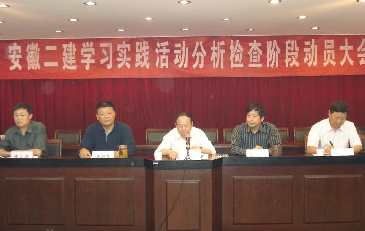 安徽二建自3月23日動員會召開以來,在集團公司學(xué)習(xí)實踐活動第一指導(dǎo)督查組的指導(dǎo)下,圓滿完成了學(xué)習(xí)實踐活動第一階段各項工作任務(wù),經(jīng)集團公司學(xué)習(xí)實踐活動領(lǐng)導(dǎo)小組辦公室及第一指導(dǎo)督查組同意,從5月19日轉(zhuǎn)入第二階段(分析檢查)。會上,朱治淮書記首先對公司學(xué)習(xí)實踐活動學(xué)習(xí)調(diào)研階段工作作了簡要回顧:一是領(lǐng)導(dǎo)高度重視,及時成立組織機構(gòu);二是精心謀劃活動載體,營造良好的輿論氛圍;三是妥善處理工學(xué)矛盾,認真組織學(xué)習(xí);四是突出實踐特色,深入開展調(diào)研活動;五是緊緊圍繞“六問”開展解放思想大討論;六是精心統(tǒng)籌安排,努力做到“兩不誤、兩促進”。朱書記著重強調(diào)第二階段要抓好四項工作:一是堅持把理論學(xué)習(xí)貫穿始終;二是切實找準(zhǔn)存在的突出問題;三是認真開好專題民主生活會;四是形成領(lǐng)導(dǎo)班子的分析檢查報告。