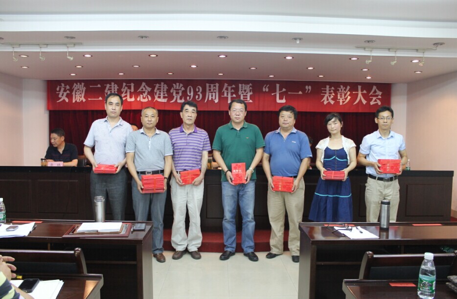 7月1日下午,安徽二建黨委在三樓會議室召開了紀念建黨93周年暨“七一”表彰會。公司兩級領(lǐng)導(dǎo)班子成員、受表彰的先進基層黨組織代表、優(yōu)秀共產(chǎn)黨員、優(yōu)秀共產(chǎn)黨員示范崗、部分在崗黨員和“我與安徽建工夢”征文獲獎代表共70多人參加會議。