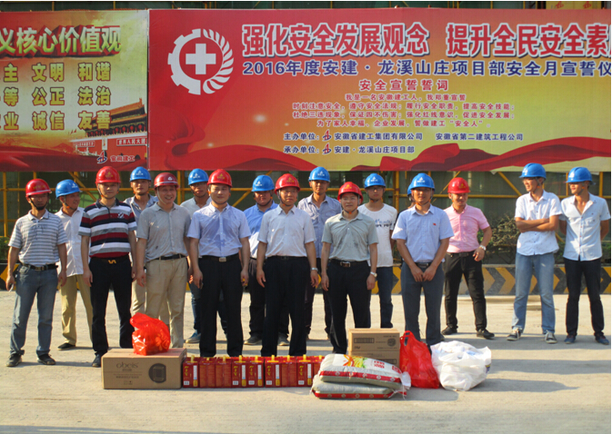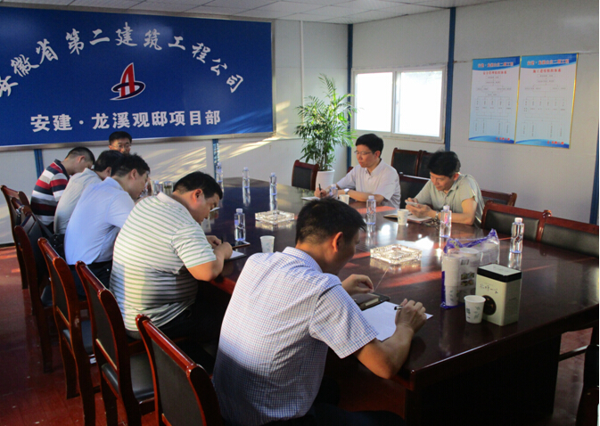 在隨后召開的現(xiàn)場工作會上,王厚良副總經(jīng)理對安建·龍溪山莊工程質(zhì)量和目前所取得的成績給予了充分肯定,對項目近期工作提出四點要求,一是要高標準、嚴要求,抓好現(xiàn)場安全文明施工和標準化施工,提高安徽建工集團在當?shù)氐挠绊懥?;二是要高度重視安全質(zhì)量,確保安全無事故,質(zhì)量無缺陷;三是要強化目標責任制,充分調(diào)動全體員工的積極性;四是要加強人才培養(yǎng),對青年人,工作上要交真本領(lǐng),業(yè)務上要經(jīng)常開展技能培訓。