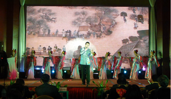 歌手章成銘動情的演唱,凌友和一段精彩的詠春拳展示以及10位姑娘們優(yōu)美的伴舞,將節(jié)目從形式到內容演繹得淋漓盡致,博得臺下陣陣掌聲,為整場晚會的精彩演出開了好頭。