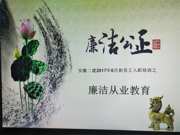 6月19日,安徽二建紀(jì)委對新入職員工進(jìn)行了崗前廉潔從業(yè)教育培訓(xùn),首次將廉潔自律作為走上新崗位的第一課,引導(dǎo)和加強(qiáng)新員工在思想上牢固樹立“廉潔從業(yè),遵紀(jì)守法”的廉潔意識,提高廉潔自律的辨識能力和自我約束力。