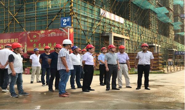 趙董事長一行深入施工現(xiàn)場,聽取了項目基本情況的匯報,對目前現(xiàn)場施工進(jìn)度、安全、質(zhì)量和樓盤銷售情況給予充分肯定;趙董事長強調(diào),連續(xù)高溫天氣,要加強防暑降溫措施,保證安全生產(chǎn)。對于施工現(xiàn)場面臨部分拆遷難的問題,安徽二建和安建地產(chǎn)要拿出積極有效的實施方案,盡快把拆遷問題解決好;兩家單位要共同進(jìn)退,團(tuán)結(jié)一致,把安徽建工這個國企品牌打出去、樹起來。