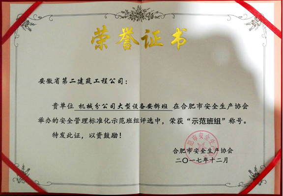 近日在合肥市安全生產(chǎn)協(xié)會(huì)第二屆第三次會(huì)員大會(huì)上傳來喜訊,機(jī)械分公司大型設(shè)備安拆班榮獲“示范班組”榮譽(yù)稱號(hào)。本次評(píng)選活動(dòng)由合肥市安全生產(chǎn)協(xié)會(huì)主辦,來自市內(nèi)數(shù)十家企業(yè)的近百個(gè)班組參與評(píng)選。