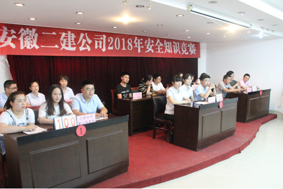 6月8日下午,安徽二建公司2018年安全知識競賽在公司原三樓會議室舉行。工會副主席蒯家江,安全總監(jiān)、安全管理部主任曹建,技術(shù)質(zhì)量部副主任梅紅擔任評委。各分公司領(lǐng)隊、安全科負責人以及各參賽代表隊參加活動。