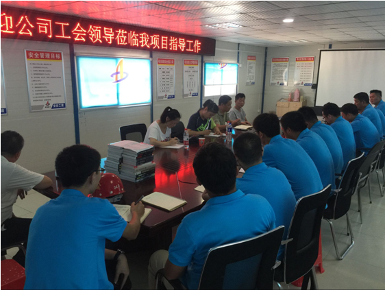 李主席一行到達(dá)施工現(xiàn)場,參觀了工地,仔細(xì)詢問了項(xiàng)目概況以及目前施工進(jìn)度、質(zhì)量、安全等方面情況,聽取了項(xiàng)目工會主席創(chuàng)建“工人先鋒號”匯報(bào),對項(xiàng)目班子以“一流工作、一流服務(wù)、一流業(yè)績、一流團(tuán)隊(duì)”為目標(biāo)的創(chuàng)建活動(dòng)給予了肯定,鼓勵(lì)項(xiàng)目部繼續(xù)完善,爭創(chuàng)集團(tuán)“工人先鋒號”工程。