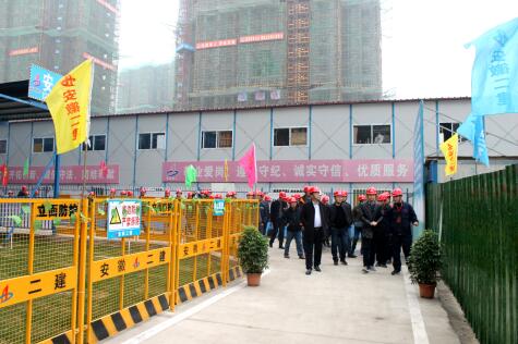 12月1日,安徽二建阜陽(yáng)大學(xué)城•紅街項(xiàng)目、安建楓林源筑項(xiàng)目施工現(xiàn)場(chǎng)舉行了在建項(xiàng)目現(xiàn)場(chǎng)觀摩會(huì)。活動(dòng)旨在深入推進(jìn)公司基礎(chǔ)管理深化年活動(dòng),充分發(fā)揮基層黨組織推動(dòng)發(fā)展、服務(wù)職工、凝聚人心、促進(jìn)和諧作用,使黨建工作更好地融入企業(yè)的生產(chǎn)經(jīng)營(yíng)管理之中,進(jìn)一步提高施工現(xiàn)場(chǎng)文明生產(chǎn)施工和安全質(zhì)量管理水平。公司黨委書(shū)記劉賢奇、副總經(jīng)理葉和永出席,所屬分公司黨支部書(shū)記、分管安全生產(chǎn)副經(jīng)理及安全科、綜合辦負(fù)責(zé)人、全體自營(yíng)項(xiàng)目項(xiàng)目經(jīng)理、安全負(fù)責(zé)人、項(xiàng)目黨支部負(fù)責(zé)人參加觀摩會(huì)。