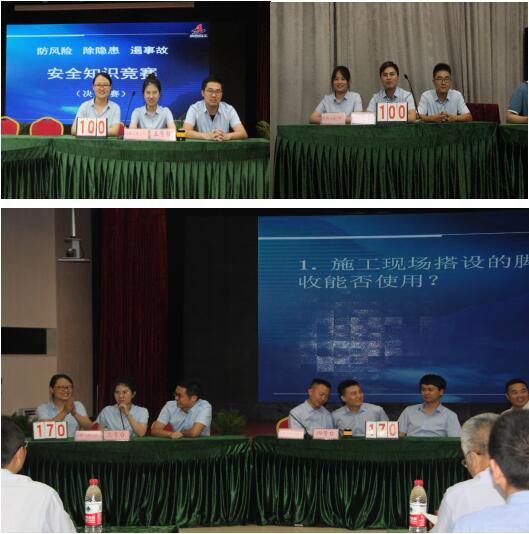 在2019年全國第18個(gè)“安全生產(chǎn)月”期間,為更好地促進(jìn)集團(tuán)公司廣大職工深入學(xué)習(xí)掌握行業(yè)安全生產(chǎn)相關(guān)法律法規(guī)及標(biāo)準(zhǔn)規(guī)范,認(rèn)真貫徹落實(shí)“安全第一、預(yù)防為主、綜合治理”方針,強(qiáng)化“安全為天 生命至上”理念,6月12日下午,在集團(tuán)公司三樓會(huì)議室隆重舉行“防風(fēng)險(xiǎn)、除隱患、遏事故”主題安全知識(shí)競賽活動(dòng),共25支代表隊(duì)參賽,公司安全生產(chǎn)總監(jiān)曹建,總經(jīng)理助理、工會(huì)副主席蒯家江帶隊(duì)參賽。