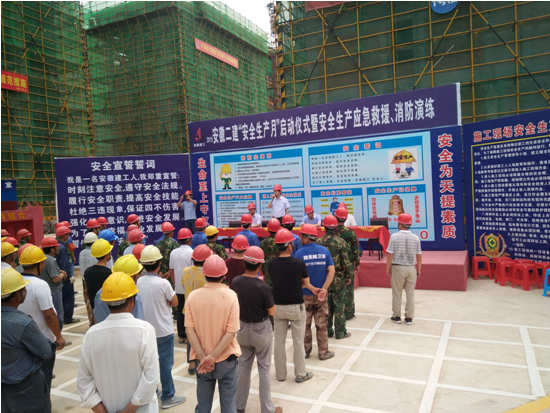 6月16日上午,安全管理部組織、信訪保衛(wèi)部及后勤綜合服務(wù)部協(xié)同在五分公司固鎮(zhèn)名邦國(guó)際花都項(xiàng)目開(kāi)展6.16安全咨詢?nèi)铡踩?、簽名、?yīng)急救援演練、職工體檢、安全主題宣講、安全生產(chǎn)經(jīng)驗(yàn)交流、安全教育場(chǎng)館體驗(yàn)、安全宣傳圖牌展覽等一系列“安全生產(chǎn)月”宣傳教育活動(dòng),分管安全副總經(jīng)理葉和永任總指揮,項(xiàng)目部全體管理人員及工人共一百余人參加。