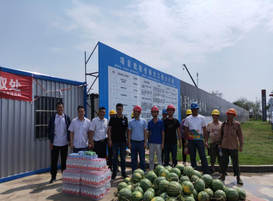 隨著氣溫的不斷攀升,工人露天施工作業(yè),體能消耗很大,為了切實做好一線工人的防暑降溫工作,文一地產(chǎn)集團購買了人丹、十滴水、西瓜、礦泉水等防暑降溫用品送到項目現(xiàn)場,把清涼送到生產(chǎn)一線,對施工人員頂烈日、戰(zhàn)酷暑,推進項目建設工作表示感謝,對項目開工以來,現(xiàn)場工作人員克服高溫酷暑,夜以繼日、迎難而上、加班加點、加快項目生產(chǎn)進度給予肯定,對安徽建工人“特別能吃苦、特別能戰(zhàn)斗”的良好作風給予贊許。同時叮囑大家合理調整作息時間,避開高溫時段,加強自身防護,保證安全,保護身體。