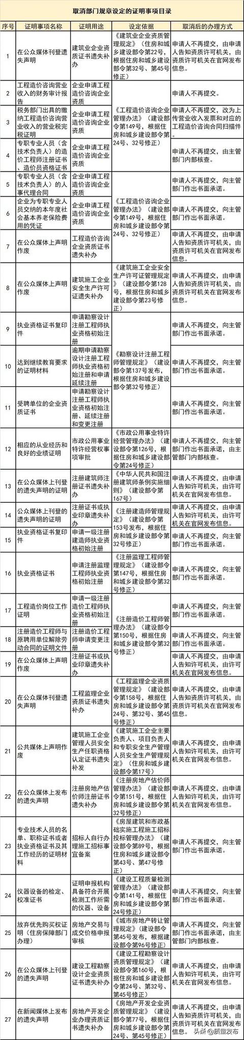為貫徹落實(shí)黨中央、國務(wù)院關(guān)于減證便民、優(yōu)化服務(wù)的部署要求,住房和城鄉(xiāng)建設(shè)部決定取消部分部門規(guī)章和規(guī)范性文件設(shè)定的證明事項(xiàng),相關(guān)證明事項(xiàng)自公布之日起取消。