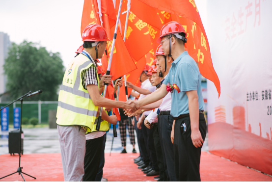 之后,公司工程管理部副主任丁光啟宣讀了2020年勞動(dòng)競賽方案;總經(jīng)理助理、一分公司經(jīng)理崔書斌代表勞動(dòng)競賽參賽單位進(jìn)行了宣誓;參加啟動(dòng)儀式的領(lǐng)導(dǎo)向參賽單位進(jìn)行授旗。最后,陸勤斌宣布安徽二建公司“戰(zhàn)疫情、搶工期、保目標(biāo)、促超產(chǎn)”勞動(dòng)競賽正式開始。