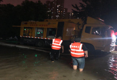7月18日,合肥遭受77年一遇單日最大降雨。藍(lán)天公寓和大興鎮(zhèn)興泰苑出現(xiàn)內(nèi)澇,情況緊急,人民群眾生命財產(chǎn)安全遭受威脅,汛情就是戰(zhàn)斗令,二分公司接到指令,馬上組建30余人的抗洪突擊隊,緊急調(diào)運大功率水泵2臺,配電箱2個,80米電線電纜,300米水管等防汛物資,20分鐘極速趕到抗洪前線?,F(xiàn)場有的架設(shè)水泵、有的鋪設(shè)電纜、有的配合抽水排澇,分工明確、爭分奪秒。經(jīng)過數(shù)小時的緊急救援,至凌晨,災(zāi)情得到有效控制。奮戰(zhàn)了8個小時的志愿者們才撤出前線。
