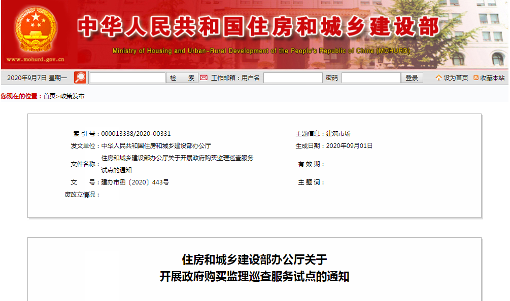 住房和城鄉(xiāng)建設(shè)部開展政府購買監(jiān)理巡查服務(wù)試點