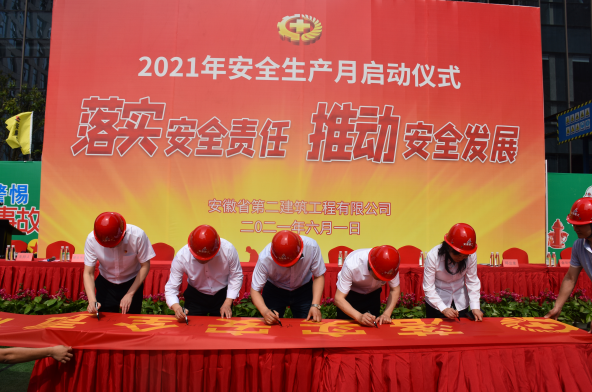 6月1日上午,安徽二建公司在六分公司文一春風(fēng)里項(xiàng)目舉行“安全生產(chǎn)月”啟動(dòng)儀式,公司安委會(huì)成員,安全管理部、工會(huì)全體人員,所屬各單位分管安全、質(zhì)量副經(jīng)理、安全科長,在肥項(xiàng)目經(jīng)理共百余人參加。