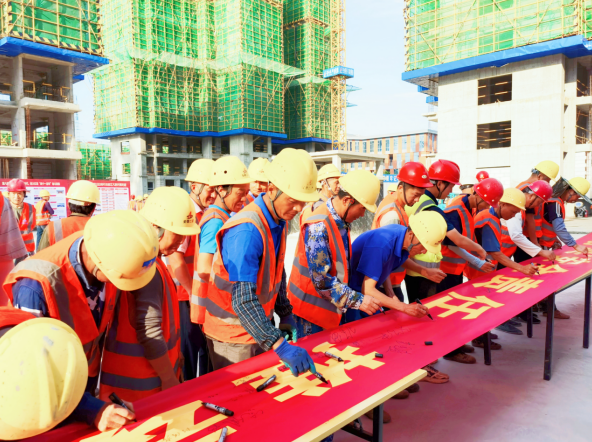 上午8點(diǎn)30分活動(dòng)開始,活動(dòng)由副總經(jīng)理葉和永主持。全體職工在安全總監(jiān)曹建的帶領(lǐng)下進(jìn)行了安全宣誓。隨后,安全管理部副主任賈賢財(cái)組織大家進(jìn)行安全承諾簽名、安全咨詢及消防應(yīng)急救援演練活動(dòng)。公司所屬各單位、項(xiàng)目部也同步開展了啟動(dòng)儀式。