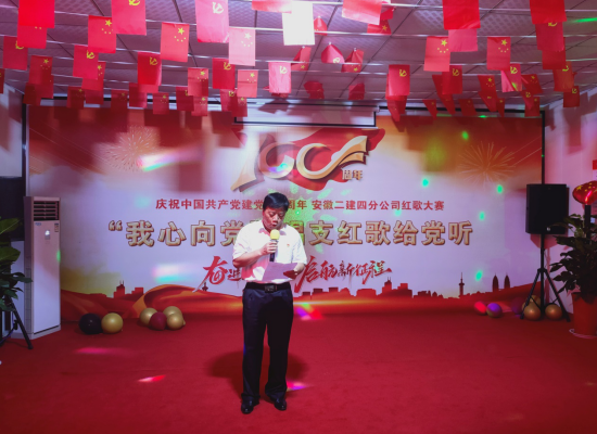 6月24日晚,由四分公司黨支部、工會、團(tuán)支部聯(lián)合舉辦的“傳唱紅歌、歌頌祖國”紀(jì)念建黨100周年主題紅歌賽在宿州三館一院一中心PPP項目部會議室隆重舉行,機關(guān)科室和所屬項目部的十六支隊伍參加了比賽,用歌聲頌黨,以行動獻(xiàn)禮。