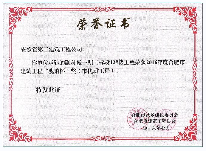 琥珀杯(融科城一期二標段12#樓工程)