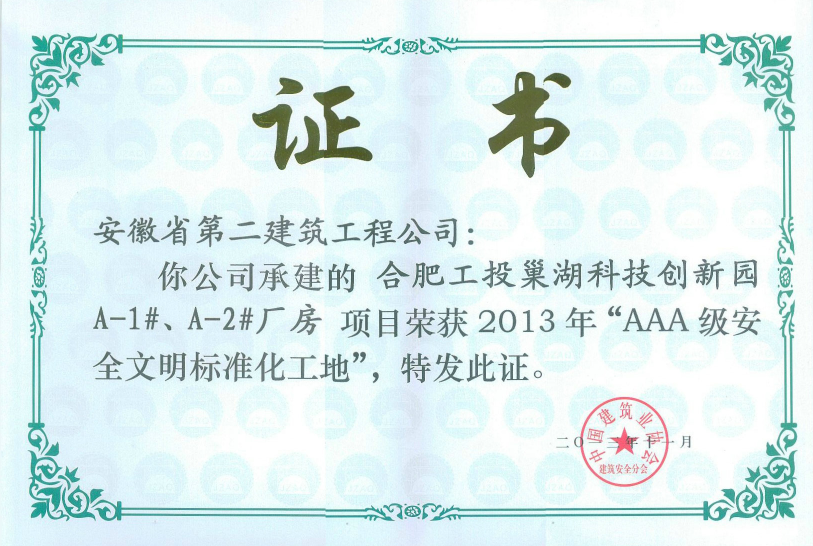AAA級安全文明示范工地(合肥工投巢湖科技創(chuàng)新園廠房)