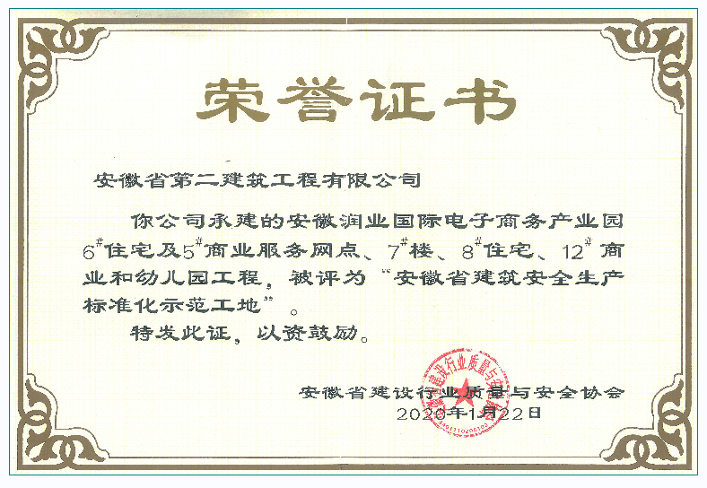 省級(jí)安全文明示范工地(安徽潤(rùn)葉國(guó)際電子商務(wù)產(chǎn)業(yè)園)