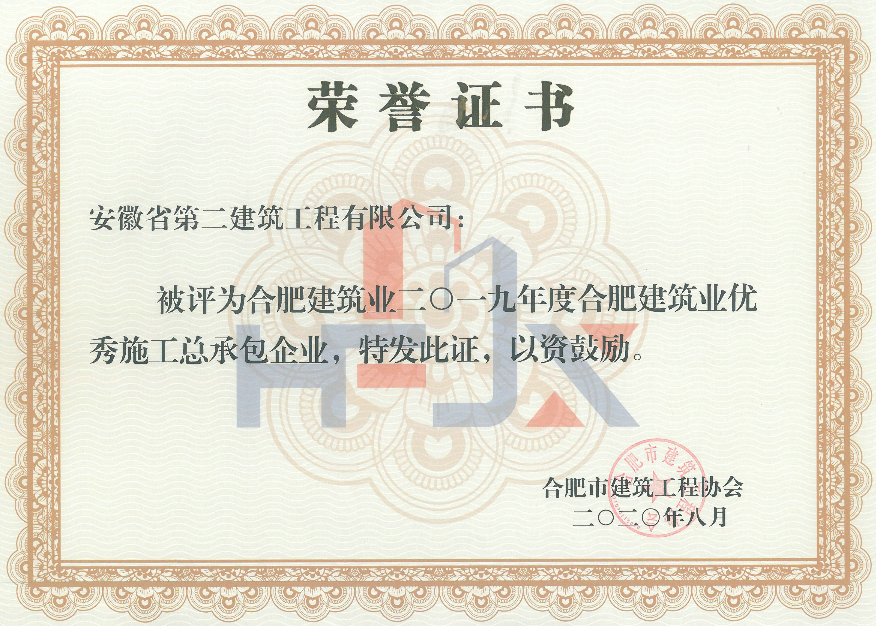 2019年度合肥建筑業(yè)優(yōu)秀施工總承包企業(yè)
