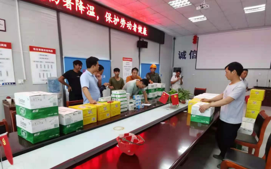 在加緊工期進(jìn)度的同時(shí),項(xiàng)目部還合理安排施工作業(yè)時(shí)間,盡量避開高溫作業(yè),及時(shí)發(fā)放防暑降溫藥品以保證安全生產(chǎn)。