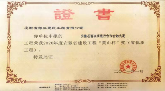近日,由安徽二建一分公司承建的岳西農(nóng)商銀行合作金融大廈工程通過(guò)安徽省住房和城鄉(xiāng)建設(shè)廳專家驗(yàn)收,獲得2020年度安徽省建設(shè)工程“黃山杯”獎(jiǎng)。