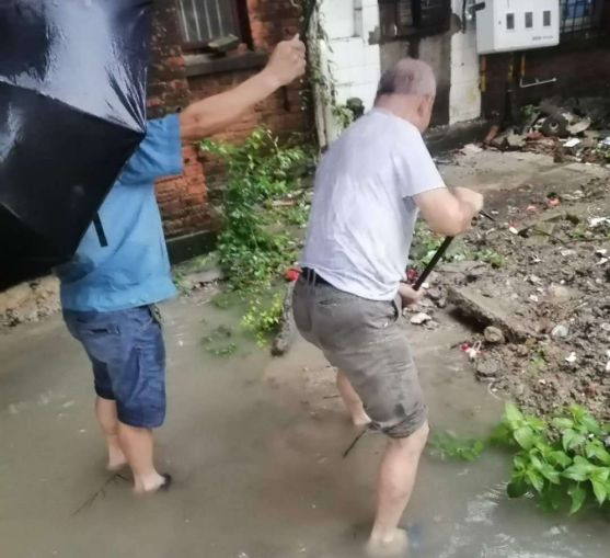汛情就是命令,搶險(xiǎn)就是責(zé)任。后勤黨員干部全體人員緊急行動(dòng)。一是立即召開防汛救災(zāi)搶險(xiǎn)工作緊急會(huì)議,總經(jīng)理助理蒯家江要求大家統(tǒng)一思想、提高站位、壓實(shí)責(zé)任、聽從指揮,加強(qiáng)隱患排查,勇于擔(dān)當(dāng)、不怕吃苦,第一時(shí)間發(fā)現(xiàn)險(xiǎn)情報(bào)告并進(jìn)行處置,確保轄區(qū)內(nèi)住戶的生命財(cái)產(chǎn)安全。二是成立后勤黨支部防汛救災(zāi)搶險(xiǎn)突擊小組。主任書記分別任正副組長(zhǎng),并對(duì)防汛救災(zāi)搶險(xiǎn)工作做了分工和工作安排。三是立即啟動(dòng)預(yù)案,根據(jù)汛情需要科學(xué)安排搶險(xiǎn)救援任務(wù)、防汛物資準(zhǔn)備。其次整合后勤維修班人員沖在一線對(duì)老舊房區(qū)域地面進(jìn)行排澇排污,清除垃圾和廢棄物。要求全體員工從18日起進(jìn)入24小時(shí)緊急待命狀態(tài),保持手機(jī)暢通,隨時(shí)準(zhǔn)備投入到防汛救災(zāi)搶險(xiǎn)的工作中去。四是加強(qiáng)公司轄區(qū)內(nèi)老舊平房區(qū)域的巡查檢視力度,包干劃片作業(yè),責(zé)任到人,后勤辦負(fù)責(zé)人負(fù)責(zé)總體調(diào)度協(xié)調(diào),與轄區(qū)政府、街道、社區(qū)溝通對(duì)接。五是加強(qiáng)對(duì)各處內(nèi)澇地點(diǎn)進(jìn)行排水,疏通管道,積極配合轄區(qū)街道做好防汛救災(zāi)搶險(xiǎn)工作。同時(shí)對(duì)公司生活小區(qū)存在安全隱患的住戶,進(jìn)行引導(dǎo)疏散,截至18日上午10時(shí),14、15棟平房20戶住家已經(jīng)全部安全疏散。