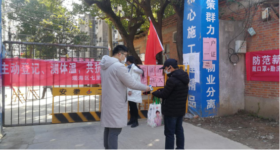 善行不分大小,志愿不分你我。在小區(qū)防控疫情值班期間,有的老人買(mǎi)不到口罩,團(tuán)員青年們就帶自己的口罩送給老人;配發(fā)的額溫槍經(jīng)常發(fā)生故障,就拿自己家的額溫槍頂替;為了避免人員接觸,小區(qū)禁止非小區(qū)住戶(hù)進(jìn)入,于是團(tuán)員青年們就幫快遞小哥送快遞、幫送氣大叔送煤氣罐、幫郵遞員送報(bào)紙......團(tuán)員青年們想盡一切辦法,盡量降低疫情防控措施給居民生活造成的不便。
