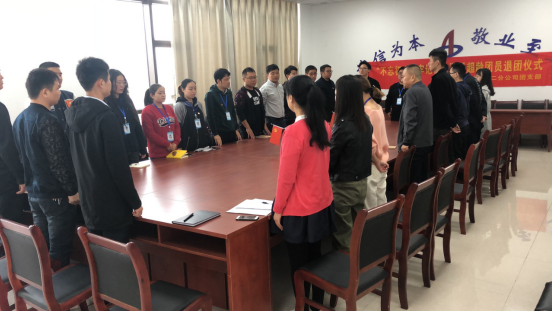 10月28日上午,二分公司團(tuán)支部開展超齡團(tuán)員退團(tuán)儀式活動。分公司超齡退團(tuán)青年、團(tuán)干團(tuán)員20余人參加會議,黨支部書記黃業(yè)云應(yīng)邀參加會議。伴隨著激情澎湃的團(tuán)歌唱響,二分公司超齡團(tuán)員退團(tuán)儀式正式開始。