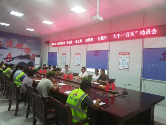 2019年9月5日,為積極響應(yīng)公司“大干100天”勞動(dòng)競賽活動(dòng)號召,激發(fā)項(xiàng)目參建隊(duì)伍的積極性和能動(dòng)性,進(jìn)一步推進(jìn)生產(chǎn)進(jìn)度,四分公司臨泉一品公館項(xiàng)目部及時(shí)召開動(dòng)員大會(huì),以“搶進(jìn)度、保工期、穩(wěn)預(yù)期、促提升,大干一百天”為口號,競賽活動(dòng)全面拉開序幕。