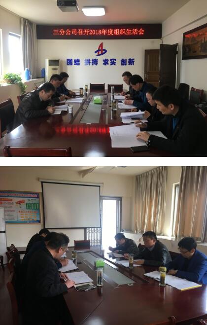 3月28日下午,三分公司在五樓會議室召開2018年度組織生活會,公司黨委副書記、紀委書記仇多維、公司總工程師邱立龍,黨委工作部主任施用宏到會指導,會議由支部書記陳習武主持,分公司領導班子全員參會。