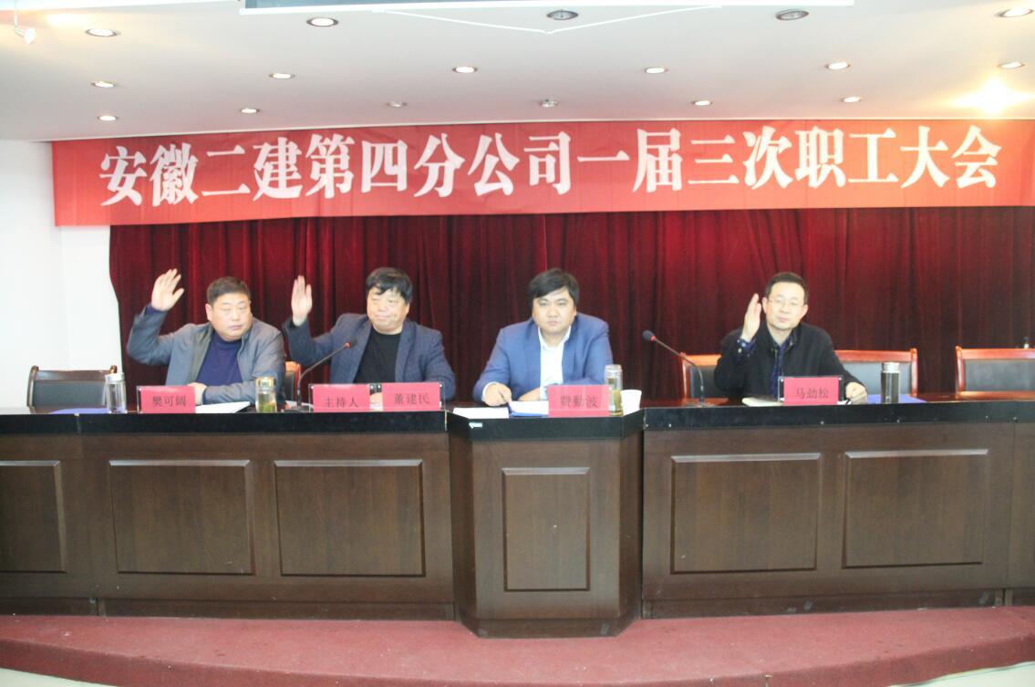 費勤波在報告中指出,過去的一年,四分公司上下認真貫徹上級決策部署,全面落實公司十六屆一次職代會精神,主動適應(yīng)建筑市場新常態(tài),以高質(zhì)量發(fā)展為要求,以“基礎(chǔ)管理深化年”活動為抓手,基礎(chǔ)管理多措并舉,生產(chǎn)經(jīng)營多元發(fā)展,經(jīng)營模式取得突破,安全質(zhì)量持續(xù)提升,黨建工作扎實有效。尤其在對外經(jīng)營方面,分公司立足省內(nèi),兼顧省外,并實現(xiàn)了合肥本地市場零的突破。新的一年,四分公司將繼續(xù)以習(xí)近平新時代中國特色社會主義思想為指導(dǎo),全面貫徹黨的十九大和十九屆二中、三中全會精神,認真落實集團控股一屆六次職代會暨2019年工作會議及公司十六屆二次職代會決策部署,堅持穩(wěn)中有進工作總基調(diào),堅持新發(fā)展理念,緊抓行業(yè)發(fā)展的大方向,以開拓經(jīng)營市場為主線,以標(biāo)準(zhǔn)化管理為抓手,不斷優(yōu)化資源配置,進一步深化企業(yè)轉(zhuǎn)型,著力推進管理和技術(shù)創(chuàng)新,奮力開創(chuàng)安徽二建四分公司高質(zhì)量發(fā)展的新局面。
