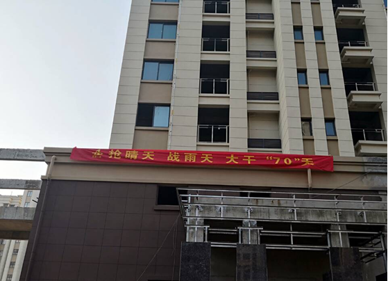 宿松龍溪觀邸項目位于晥西南山區(qū),緊靠長江流域,進入冬季雨水天氣較多,一年之中施工時間短,項目年度產(chǎn)值任務重,工期壓力大。因此,項目部以公司開展大干“70”天勞動競賽活動為契機,根據(jù)項目年度剩余工程量,進行倒排節(jié)點,科學編制施工生產(chǎn)計劃,積極開展勞動競賽活動。詳細分解到每月、每周、每日,實行周考核、日碰頭機制。為確保更好的完成大干目標,項目部領導班子劃分責任,分段包干,各科室、班組及時加強聯(lián)動。在動員會上,項目總工宣讀了公司《關于組織開展“大干70天”勞動競賽的通知》,并就施工節(jié)點任務進行了分解。各施工班組詳細匯報了人員、機械、物資等施工資源配置情況。會議要求:一是要統(tǒng)一思想,明確目標,全面掀起施工熱潮,加快施工進度;二是要優(yōu)化各種資源配置,做到物盡其用、人盡其才;三是要求各班組廣泛宣傳大干活動的目標和重要意義,鼓足干勁,做到全員參與;四是在施工生產(chǎn)大干的同時,必須提高安全意識和質量意識,要進一步強化項目的基礎管理,通過規(guī)范化的管理,提升項目安全質量管理水平;五是要堅定信心,共同努力,堅定不移執(zhí)行落實公司“大干70天”勞動競賽的通知,堅決打好四季度施工生產(chǎn)攻堅戰(zhàn)。