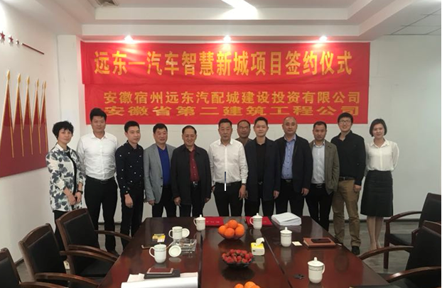 4月18日下午,安徽宿州遠(yuǎn)東汽配城建設(shè)投資有限公司與安徽二建公司就 “遠(yuǎn)東汽車(chē)智慧新城”項(xiàng)目在宿州舉行簽約儀式。安徽宿州遠(yuǎn)東汽配城建設(shè)投資有限公司董事長(zhǎng)朱成野、執(zhí)行董事徐子平、總經(jīng)理鄭志強(qiáng),公司副總經(jīng)理葉和永、安裝公司副經(jīng)理朱楊杰,以及相關(guān)人員等出席簽約儀式。