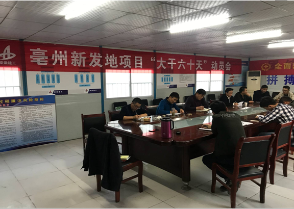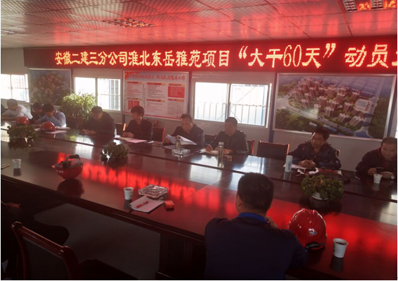 會后,各項目項目經理立即組織項目全員召開“大干60天”勞動競賽動員會,在會上對任務進行了布置分解、與所屬勞務隊伍簽訂勞動競賽責任狀。以馬福才為首的分公司領導班子分頭帶領科室負責人到各在建項目進行檢查,查看各項目勞動競賽活動的開展情況,對項目存在的困難進行了梳理、指導、協(xié)調。