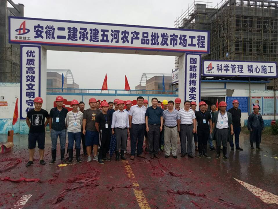 8月29日上午,條幅高懸,鞭炮齊鳴,在業(yè)主、監(jiān)理單位及安徽二建公司領導的共同見證下,由我公司承建的五河農產品批發(fā)市場一期項目主體結構順利封頂。