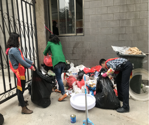 此次活動(dòng)內(nèi)容主要是清掃公司停車場(chǎng)內(nèi)垃圾、清理“僵尸”自行車、修理損壞設(shè)施、修剪樹木、規(guī)劃車位?;顒?dòng)中,青年們頂著刺鼻的氣味、對(duì)著污水橫流的垃圾堆,忽略漫天灰塵與滿臉汗水,或是用鍬鏟,或是用手撿,最終將停車場(chǎng)打掃的面目一新。