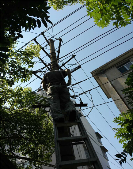 7月23日,原二公司生活基地由于供電線路嚴(yán)重老化,發(fā)生線路著火斷電事故,后勤綜合服務(wù)部接到險情報(bào)告后,立即組織搶修隊(duì)伍奔赴現(xiàn)場,維修人員不懼高溫酷暑,頂著烈日,經(jīng)過幾個小時的高空作業(yè),及時恢復(fù)了供電。
