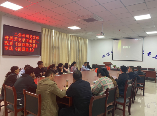 為認(rèn)真貫徹落實(shí)習(xí)近平總書記在中央黨史學(xué)習(xí)教育動(dòng)員大會(huì)上的重要講話精神,進(jìn)一步深入貫徹公司黨委關(guān)于開展黨史學(xué)習(xí)教育的文件精神。二分公司黨支部開展黨史學(xué)習(xí)教育活動(dòng),組織黨員和干部職工觀看電影《長(zhǎng)征》及紀(jì)錄片《信仰的力量》節(jié)選《祖國(guó)至上》。