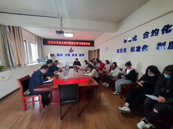 三分公司黨支部開展黨史學(xué)習(xí)教育活動,分公司機關(guān)全體人員參加,活動由支部書記陳習(xí)武主持。首先,陳習(xí)武帶領(lǐng)大家學(xué)習(xí)了二建黨發(fā)【2021】13號文《安徽二建公司黨委關(guān)于開展黨史學(xué)習(xí)教育的工作方案》,并就分公司黨支部的黨史學(xué)習(xí)教育活動做了詳細安排部署,要求全體黨員干部把思想和行動統(tǒng)一到集團、公司黨委的決策部署上來,高標(biāo)準、高質(zhì)量完成黨史學(xué)習(xí)教育各項任務(wù),努力做到學(xué)史明理、學(xué)史增信、學(xué)史崇德、學(xué)史力行,以優(yōu)異成績迎接建黨100周年。隨后,陳習(xí)武帶領(lǐng)大家上了一堂生動的黨史課。“從上海石庫門到嘉興南湖,一艘小小紅船承載著人民的重托、民族的希望,越過急流險灘,穿過驚濤駭浪,成為領(lǐng)航中國行穩(wěn)致遠的巍巍巨輪?!?。通過視頻和講解相結(jié)合,為大家敘述了從中國共產(chǎn)黨成立到建立新中國,28年間,黨召開了一次次重要會議。這些會議作出的決策,指引了中國革命的方向,推動了歷史進程,具有里程碑意義。大家紛紛表示,將從黨史中汲取智慧和力量,堅定信仰信念,進一步提高黨性修養(yǎng),不忘初心,以實際行動發(fā)揮好黨員干部的模范帶頭作用,積極投入到干事創(chuàng)業(yè)中去,為分公司的發(fā)展添磚加瓦。