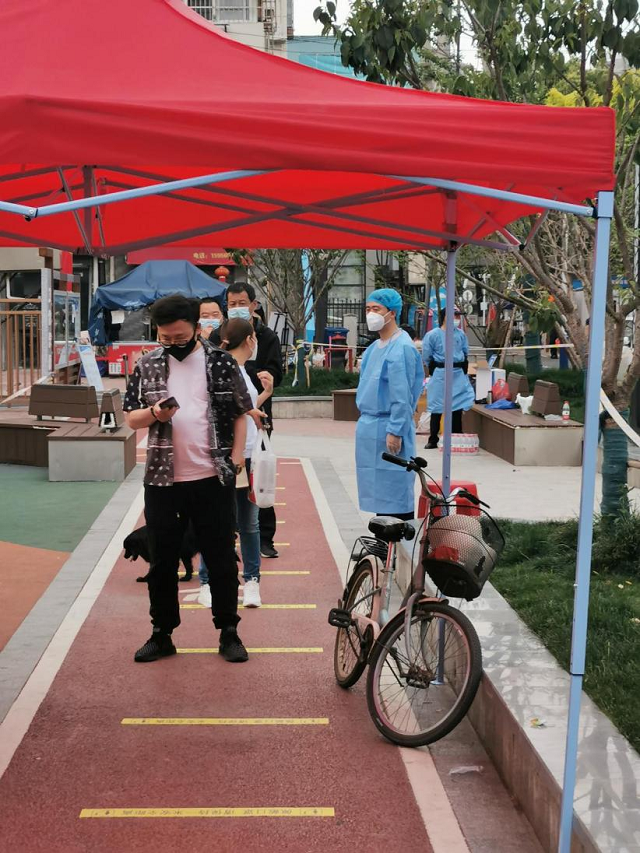 “雖然我們是預(yù)備黨員,但行動(dòng)上一直以正式黨員的標(biāo)準(zhǔn)嚴(yán)格要求自己”他們是這么說(shuō)的,也是這么做的。服務(wù)期間,他們認(rèn)真維持現(xiàn)場(chǎng)秩序,引導(dǎo)小區(qū)人員有序排隊(duì),發(fā)放核酸檢測(cè)完成小卡片,給不方便的老人上門(mén)檢測(cè)登記等。