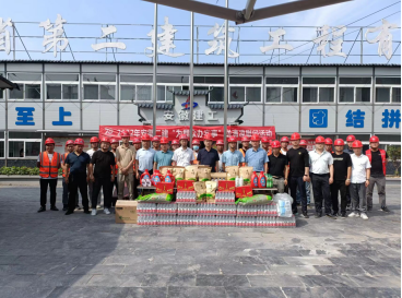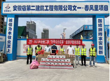 在肥東石塘鎮(zhèn)火龍社區(qū)安置點(diǎn)項(xiàng)目,葉和永為項(xiàng)目職工送上了夏季防暑藥品、飲料、花露水、毛巾等慰問品,叮囑他們要做好疫情防控形勢下的高溫作業(yè)和高溫天氣下的勞動保護(hù)。