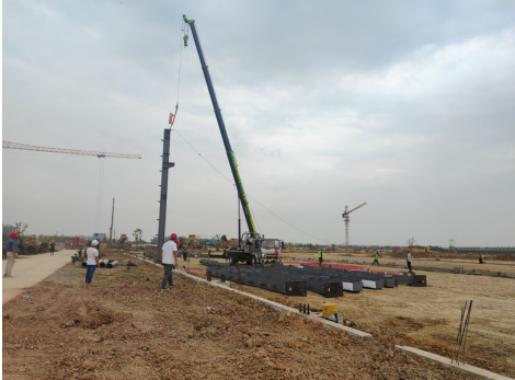 8月16日上午8點(diǎn)28分,長(zhǎng)豐新能源汽車配套產(chǎn)業(yè)園項(xiàng)目2#廠房鋼結(jié)構(gòu)吊裝施工儀式正式開始。項(xiàng)目管理人員對(duì)現(xiàn)場(chǎng)人、材、機(jī)等各項(xiàng)資源進(jìn)行合理調(diào)配,精心組織安排,順利完成了對(duì)長(zhǎng)10.5米,重4噸的第一根柱的吊裝工作,標(biāo)志著項(xiàng)目從基礎(chǔ)施工正式步入吊裝階段。