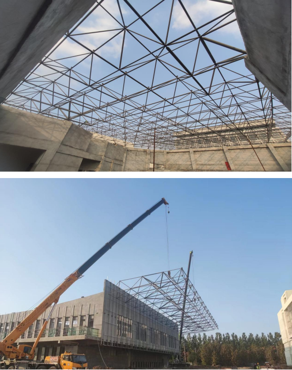 目前,體育中心鋼網(wǎng)架起頭部分已吊裝完成,為下一步順利施工奠定基礎。項目團隊將繼續(xù)以高標準、嚴要求,提高工程質量,完成項目建設目標。